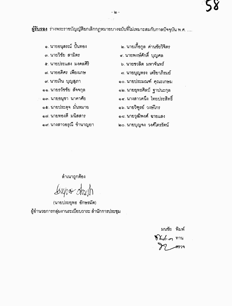 ร่างพระราชบัญญัติยกเลิกกฎหมายบางฉบับที่ไม่เหมาะสมกับกาลปัจจุบัน พ.ศ. .... (นายพฤฒิชัย ดำรงรัตน์ กับคณะ เป็นผู้เสนอ) |