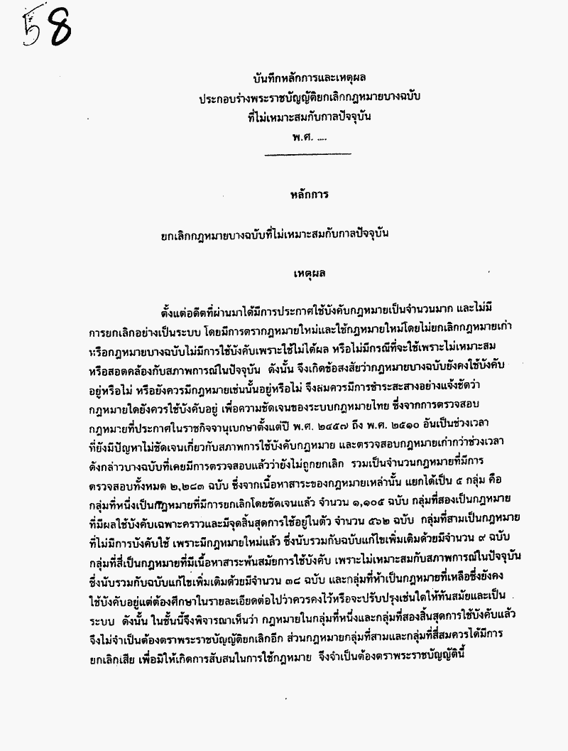 • ร่างพระราชบัญญัติยกเลิกกฎหมายบางฉบับที่ไม่เหมาะสมกับกาลปัจจุบัน พ.ศ. ....