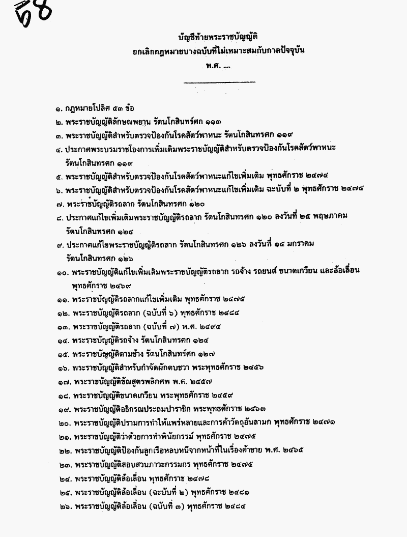 • ร่างพระราชบัญญัติยกเลิกกฎหมายบางฉบับที่ไม่เหมาะสมกับกาลปัจจุบัน พ.ศ. ....