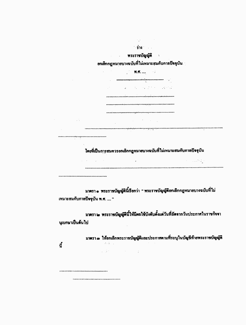 • ร่างพระราชบัญญัติยกเลิกกฎหมายบางฉบับที่ไม่เหมาะสมกับกาลปัจจุบัน พ.ศ. .... (