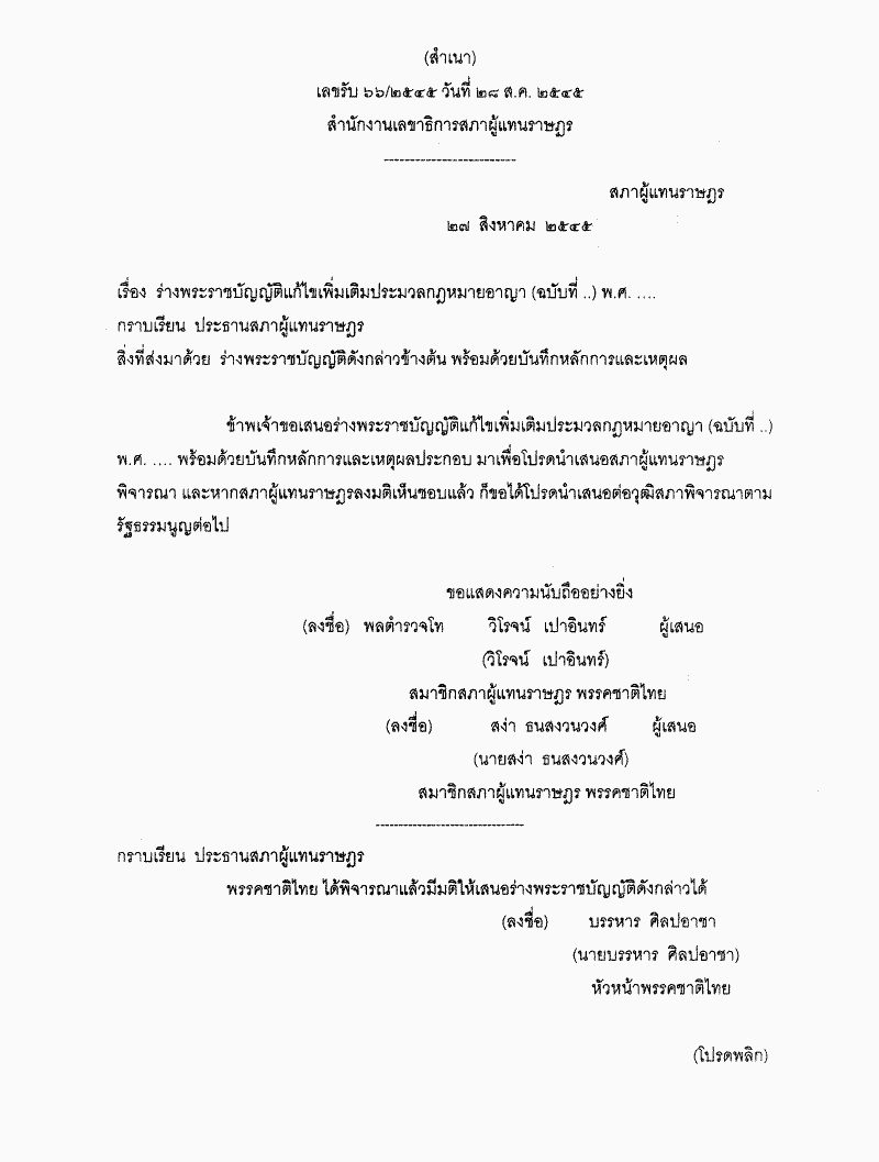 ร่างพระราชบัญญัติแก้ไขเพิ่มเติมประมวลกฎหมายอาญา (ฉบับที่..) พ.ศ. ..... |