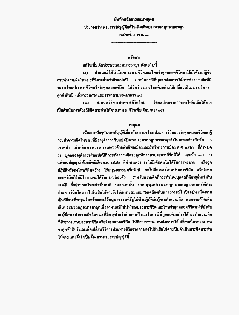 • ร่างพระราชบัญญัติแก้ไขเพิ่มเติมประมวลกฎหมายอาญา (ฉบับที่..) พ.ศ. .....