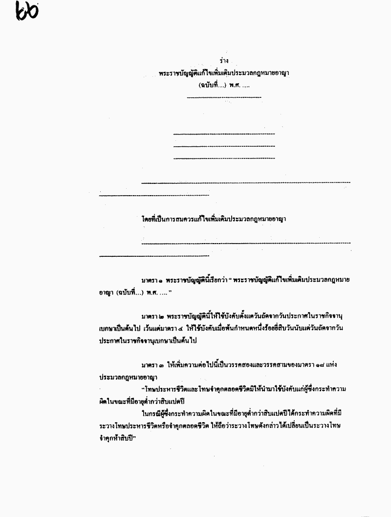 • ร่างพระราชบัญญัติแก้ไขเพิ่มเติมประมวลกฎหมายอาญา (ฉบับที่..) พ.ศ. .....