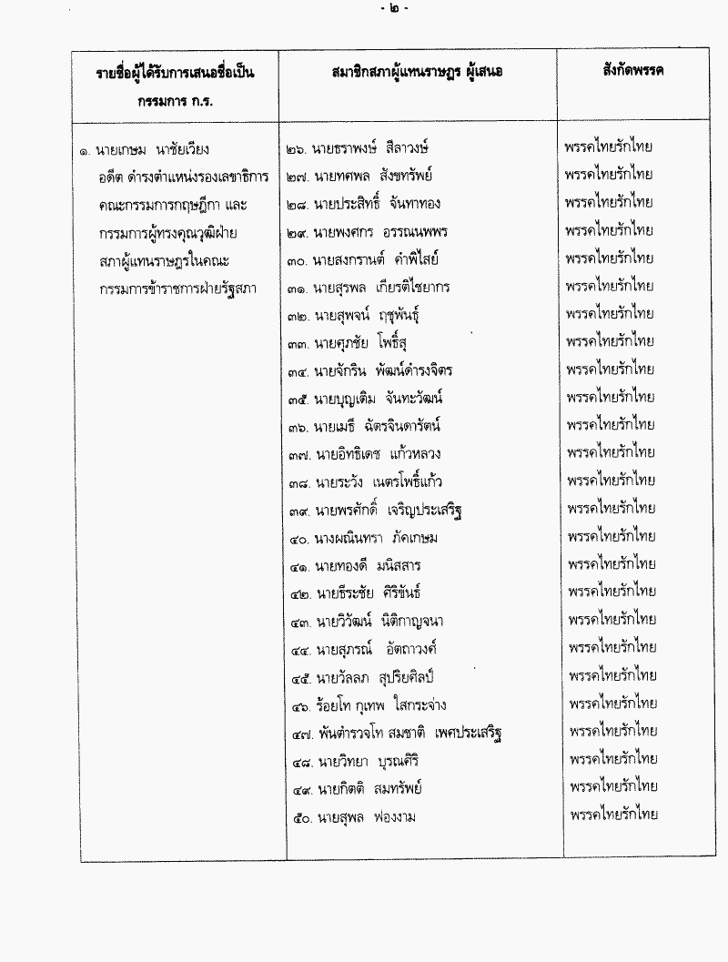 รายชื่อผู้ทรงคุณวุฒิที่สมาชิกสภาผู้แทนราษฎรเสนอ (เลือก 1 ราย) |