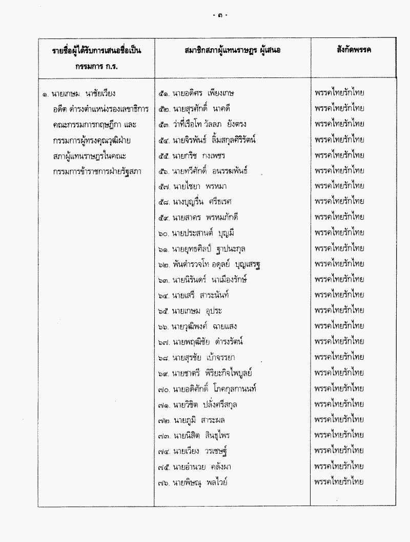• รายชื่อผู้ทรงคุณวุฒิที่สมาชิกสภาผู้แทนราษฎรเสนอ (เลือก 1 ราย)