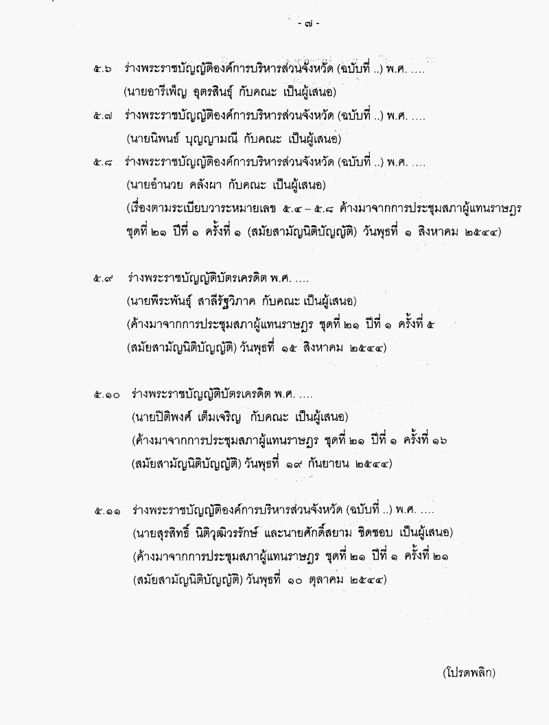 • ระเบียบวาระการประชุมสภาผู้แทนราษฎรชุดที่ 21 ปีที่ 2 ครั้งที่ 14 (สมัยสามัญนิติบัญญัติ) วันจันทร์ที่ 23 กันยายน 2545