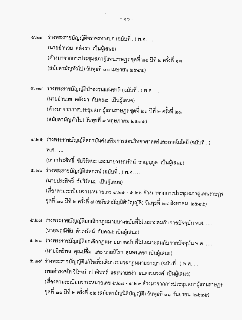 ระเบียบวาระการประชุมสภาผู้แทนราษฎรชุดที่ 21 ปีที่ 2 ครั้งที่ 14 (สมัยสามัญนิติบัญญัติ) วันจันทร์ที่ 23 กันยายน 2545 |