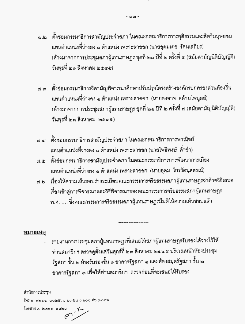 • ระเบียบวาระการประชุมสภาผู้แทนราษฎรชุดที่ 21 ปีที่ 2 ครั้งที่ 14 (สมัยสามัญนิติบัญญัติ) วันจันทร์ที่ 23 กันยายน 2545