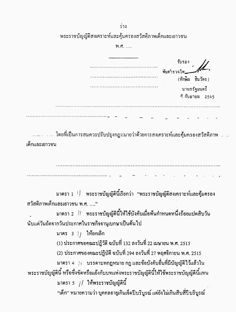 ชื่อเอกสาร :   ร่างพระราชบัญญัติสงเคราะห์และคุ้มครองสวัสดิภาพเด็กและเยาวชน พ.ศ..... (นางนิภา พริ้งศุลกะ กับคณะ เป็นผู้เสนอ)(เป็นร่างพระราชบัญญัติที่มีสาระเกี่ยวกับเด็ก ตามมาตรา 190 ของรัฐธรรมนูญแห่งราชอาณาจักรไทย)