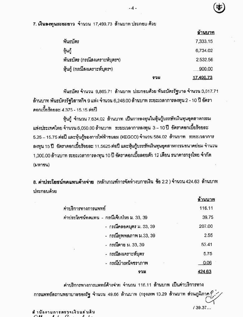 • รายงานการตรวจสอบงบดุล งบรายรับ-รายจ่ายเงินกองทุนประกันสังคม ประจำปี ๒๕๔๒