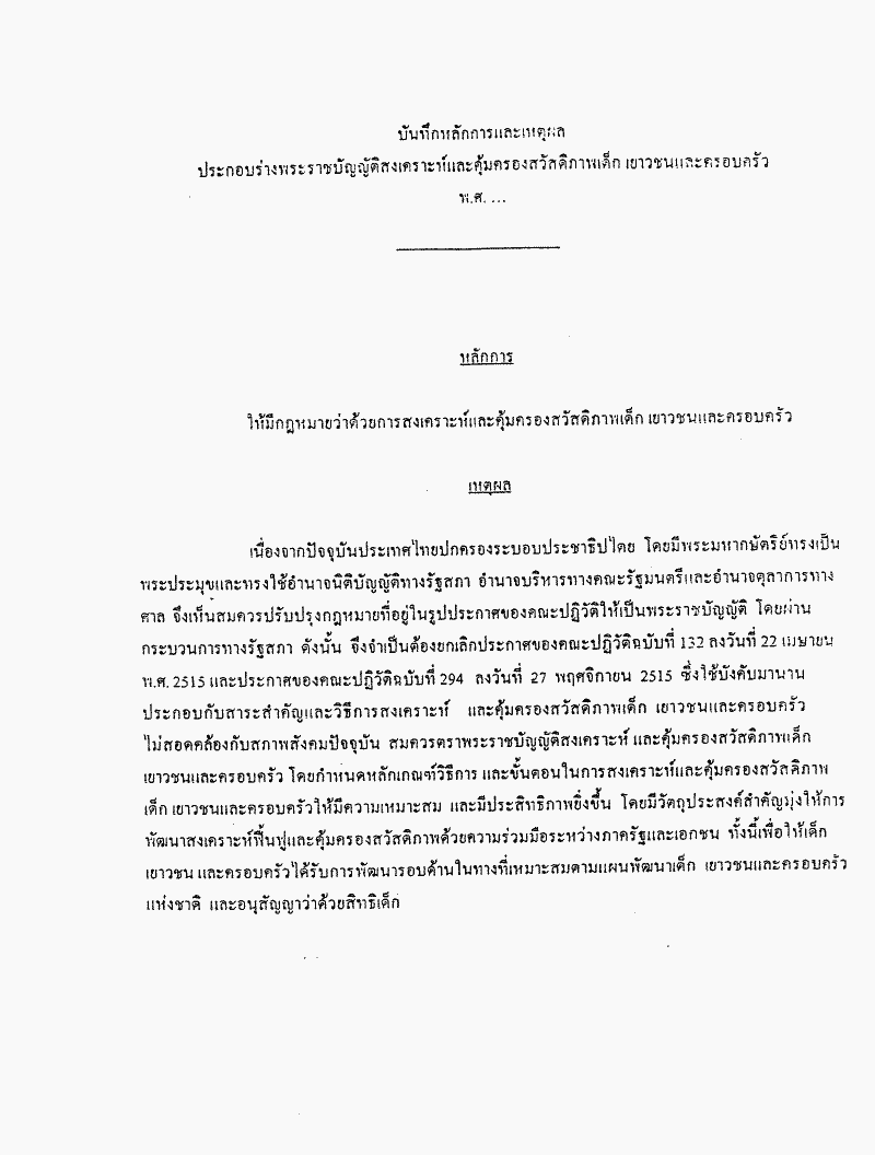 • ร่างพระราชบัญญัติสงเคราะห์และคุ้มครองสวัสดิภาพเด็ก เยาวชนและครอบครัว พ.ศ....