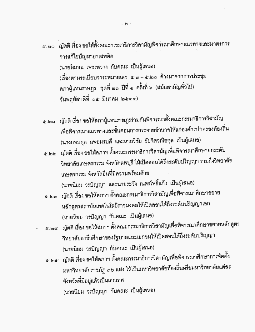• ระเบียบวาระการประชุมสภาผู้แทนราษฎร ชุดที่ ๒๑ ปีที่ ๑ ครั้งที่ ๑๖ (สมัยสามัญทั่วไป) วันพฤหัสบดีที่ ๒๖ เมษายน ๒๕๔๔