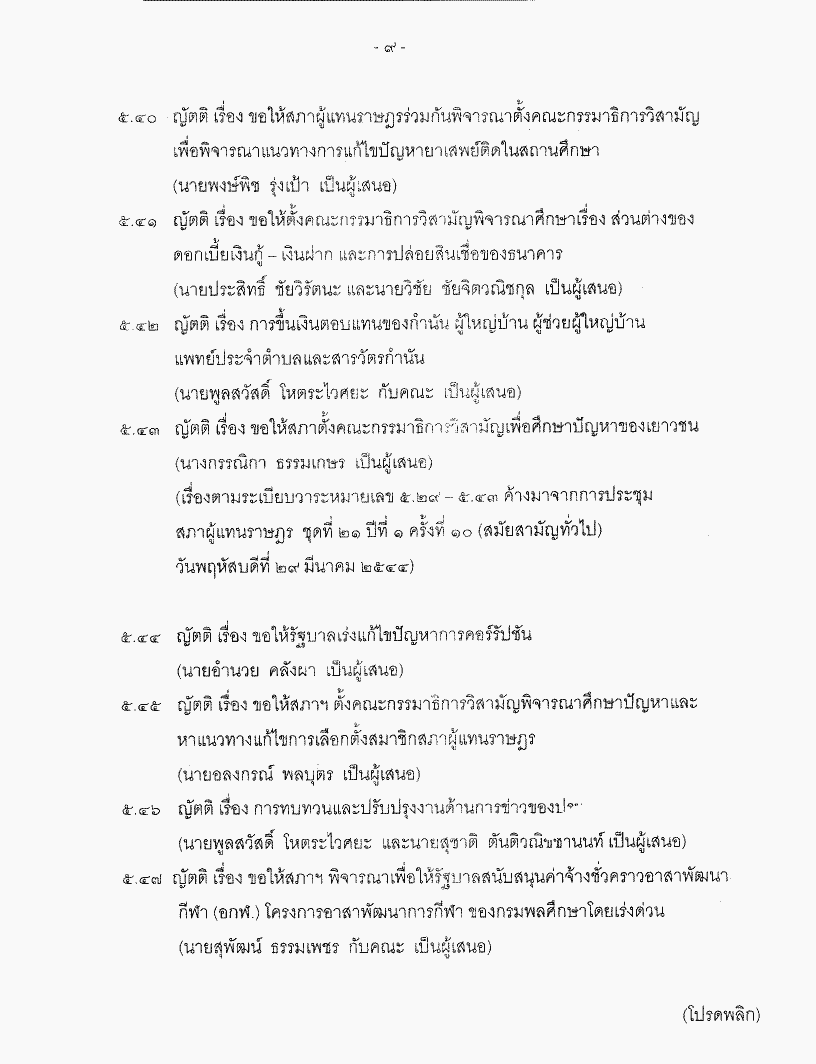• ระเบียบวาระการประชุมสภาผู้แทนราษฎร ชุดที่ ๒๑ ปีที่ ๑ ครั้งที่ ๑๖ (สมัยสามัญทั่วไป) วันพฤหัสบดีที่ ๒๖ เมษายน ๒๕๔๔