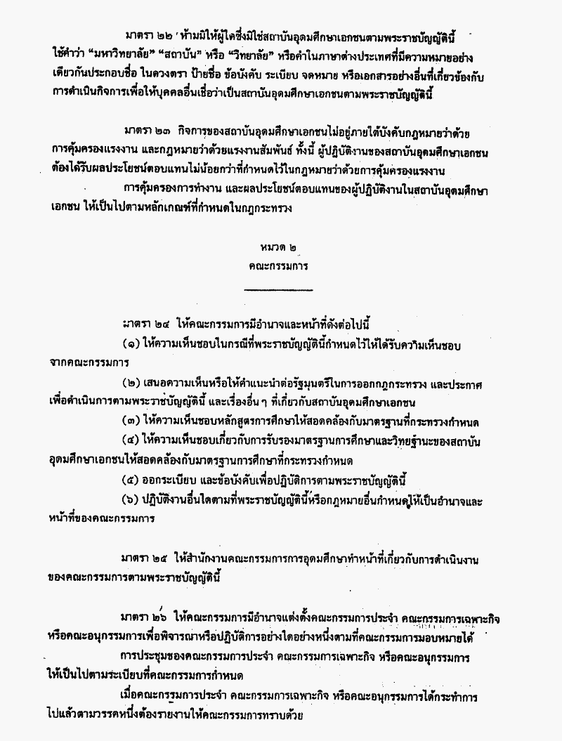 • ร่างพระราชบัญญัติสถาบันอุดมศึกษาเอกชน พ.ศ.....