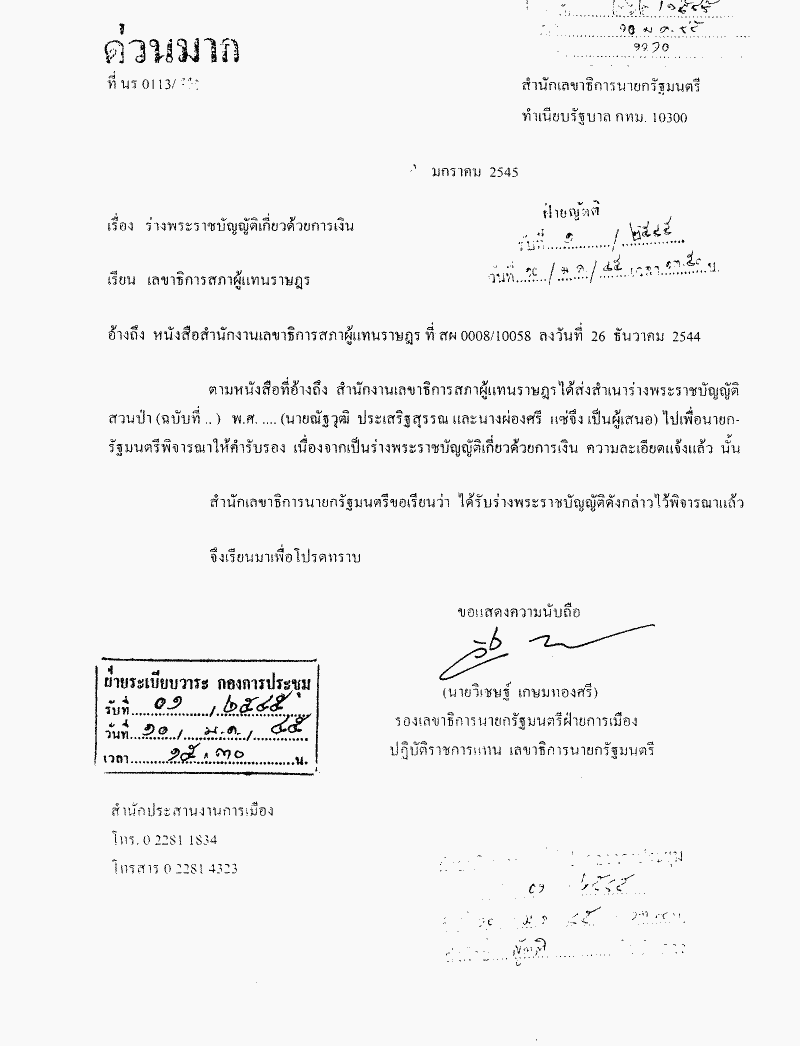 ร่างพระราชบัญญัติสวนป่า (ฉบับที่...) พ.ศ.... (นายณัฐวุฒิ ประเสริฐสุวรรณ และนางผ่องศรี แซ่จึง เป็นผู้เสนอ) |
