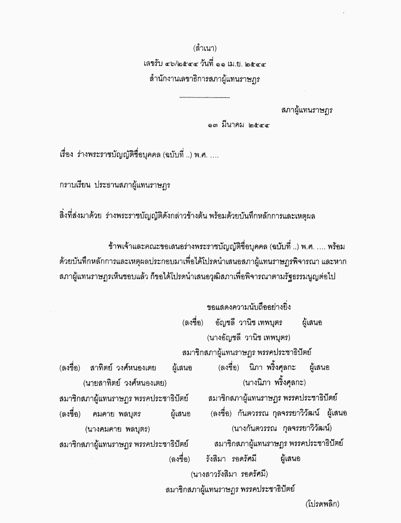 ร่างพระราชบัญญัติชื่อบุคคล (ฉบับที่ ..) พ.ศ. .... |