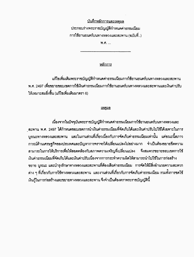 • ร่างพระราชบัญญัติกำหนดค่าธรรมเนียมการใช้ยานยนตร์บนทางหลวงและสะพาน (ฉบับที่..) พ.ศ.....