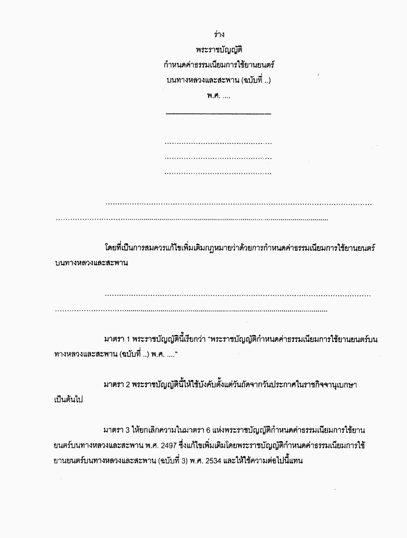 ร่างพระราชบัญญัติกำหนดค่าธรรมเนียมการใช้ยานยนตร์บนทางหลวงและสะพาน (ฉบับที่..) พ.ศ..... |