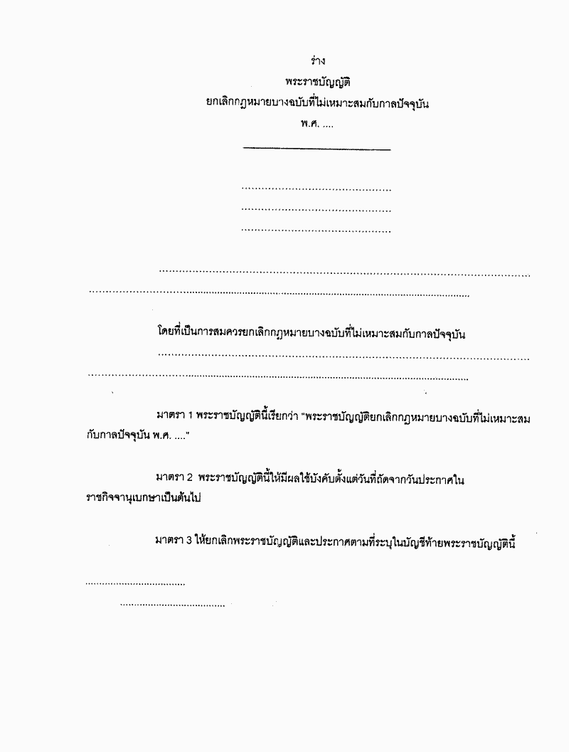 • ร่างพระราชบัญญัติยกเลิกกฎหมายบางฉบับที่ไม่เหมาะสมกับกาลปัจจุบัน พ.ศ.....