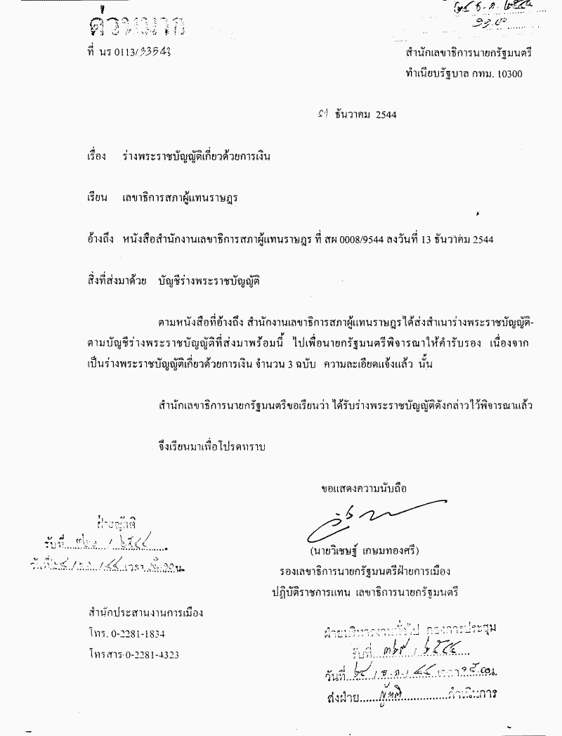 รับทราบเรื่องนายกรัฐมนตรีได้รับร่างพระราชบัญญัติเกี่ยวด้วยการเงินไว้พิจารณาให้คำรับรอง จำนวน 3 ฉบับ คือ |