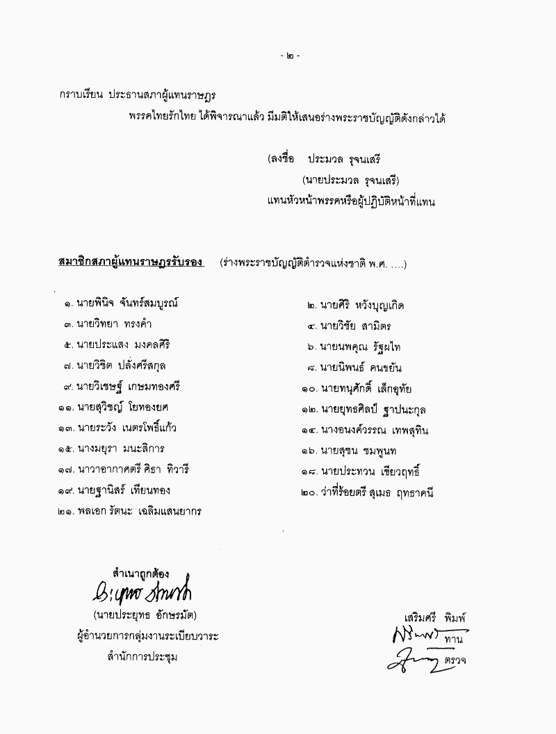 ร่างพระราชบัญญัติตำรวจแห่งชาติ พ.ศ..... (ว่าที่ร้อยตรีไพโรจน์ สุวรรณฉวี กับคณะ เป็นผู้เสนอ)