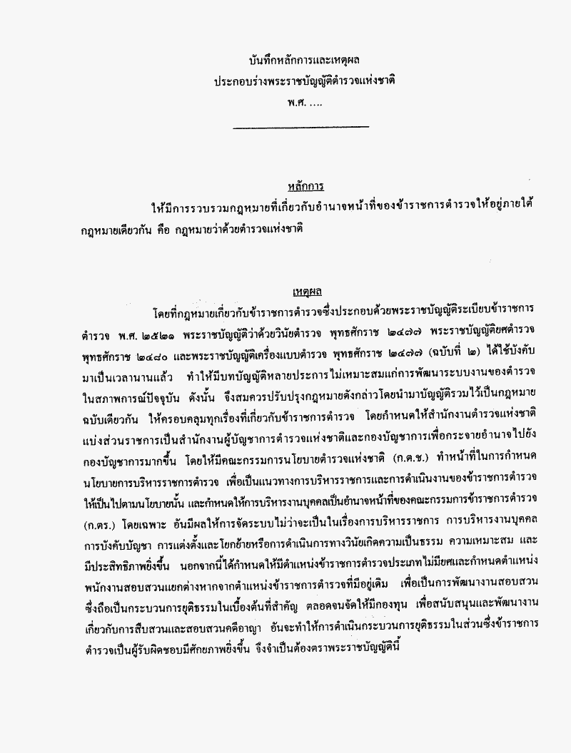 ร่างพระราชบัญญัติตำรวจแห่งชาติ พ.ศ..... (ว่าที่ร้อยตรีไพโรจน์ สุวรรณฉวี กับคณะ เป็นผู้เสนอ)