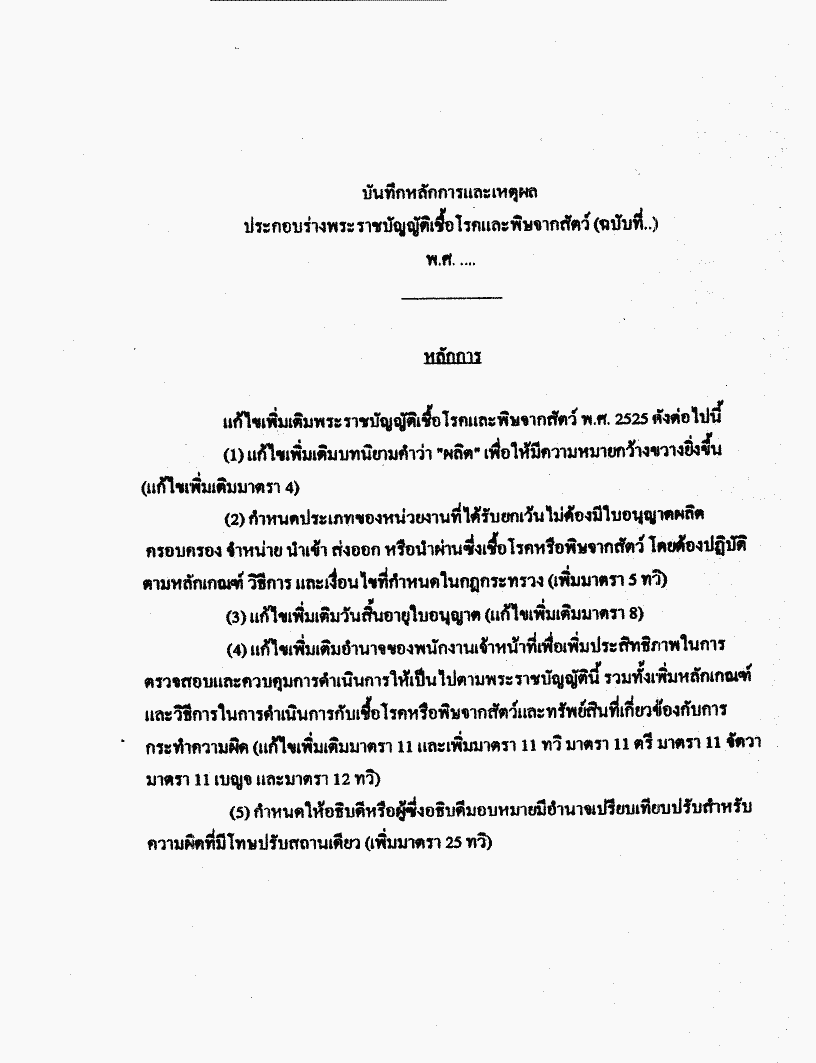 • ร่างพระราชบัญญัติเชื้อโรคและพิษจากสัตว์ (ฉบับที่ ..) พ.ศ. ....