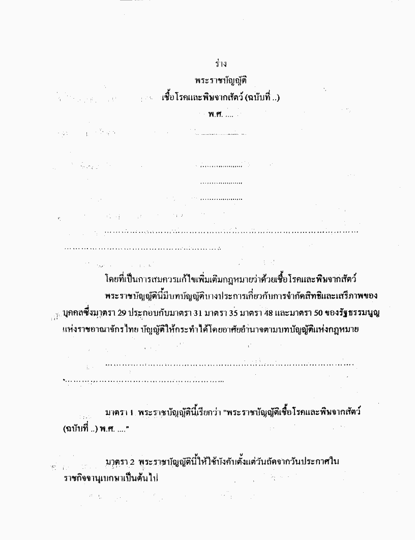 ร่างพระราชบัญญัติเชื้อโรคและพิษจากสัตว์ (ฉบับที่ ..) พ.ศ. .... |