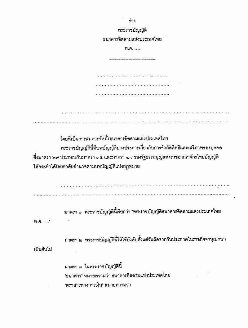 • ร่างพระราชบัญญัติธนาคารอิสลามแห่งประเทศไทย พ.ศ.....
