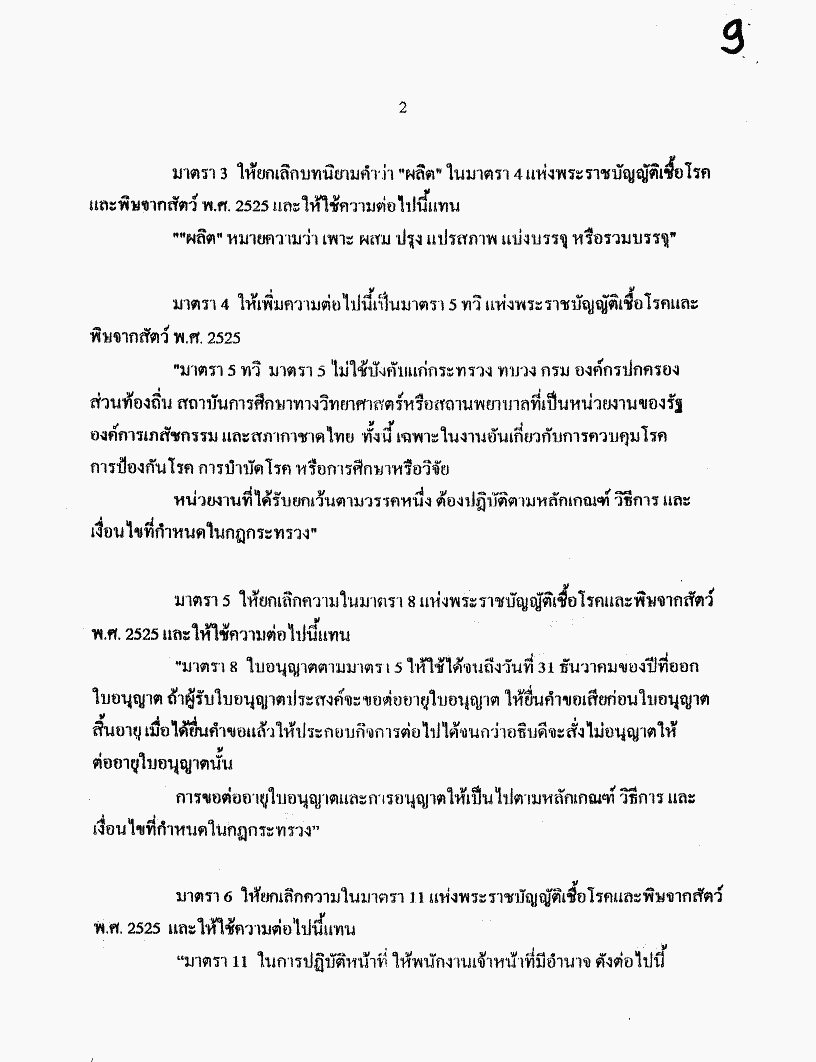 • ร่างพระราชบัญญัติเชื้อโรคและพิษจากสัตว์ (ฉบับที่ ..) พ.ศ. ....