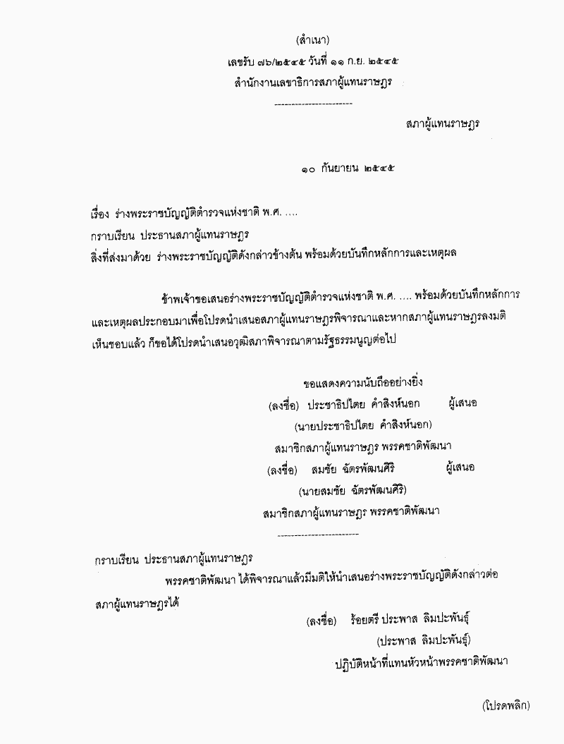 ร่างพระราชบัญญัติตำรวจแห่งชาติ พ.ศ..... (คณะรัฐมนตรี เป็นผู้เสนอ)
