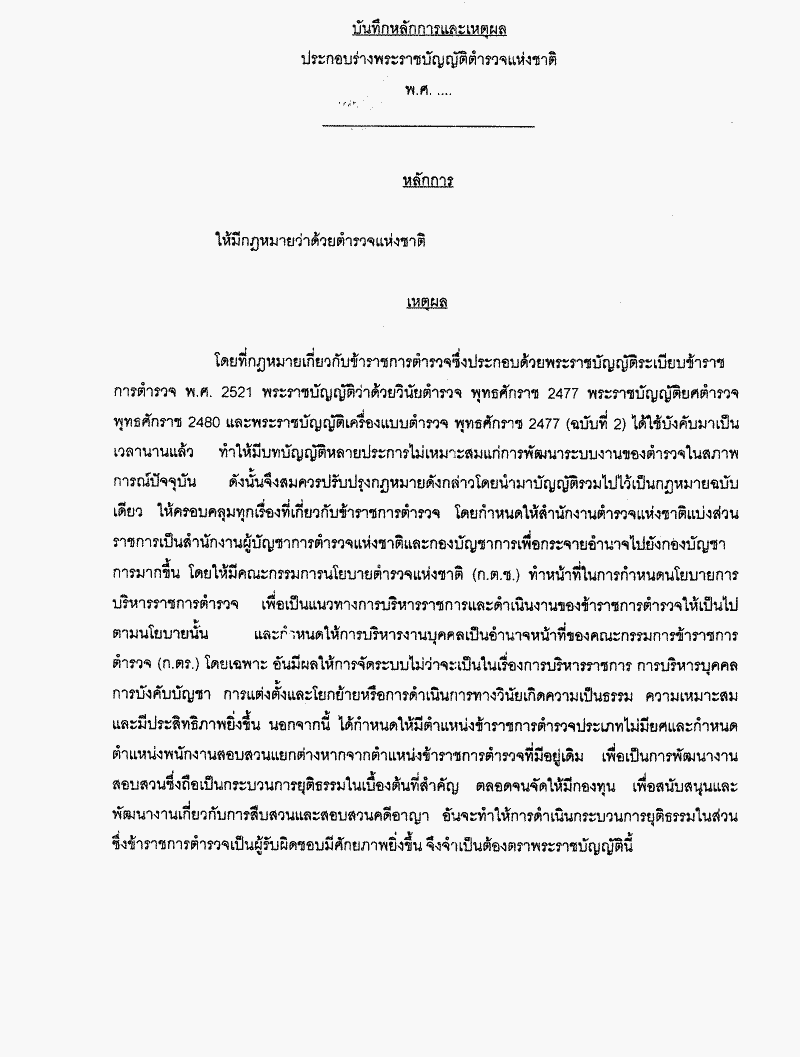 ร่างพระราชบัญญัติตำรวจแห่งชาติ พ.ศ..... (คณะรัฐมนตรี เป็นผู้เสนอ)