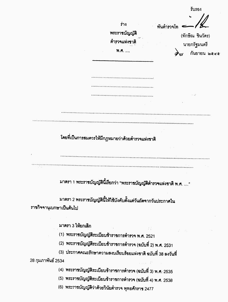 ร่างพระราชบัญญัติตำรวจแห่งชาติ พ.ศ..... (คณะรัฐมนตรี เป็นผู้เสนอ)