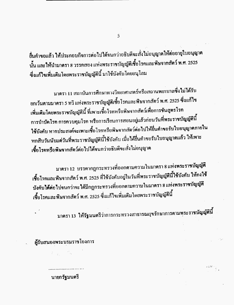 ชื่อเอกสาร :   ร่างพระราชบัญญัติเชื้อโรคและพิษจากสัตว์ (ฉบับที่ ..) พ.ศ. .... (คณะรัฐมนตรี เป็นผู้เสนอ)