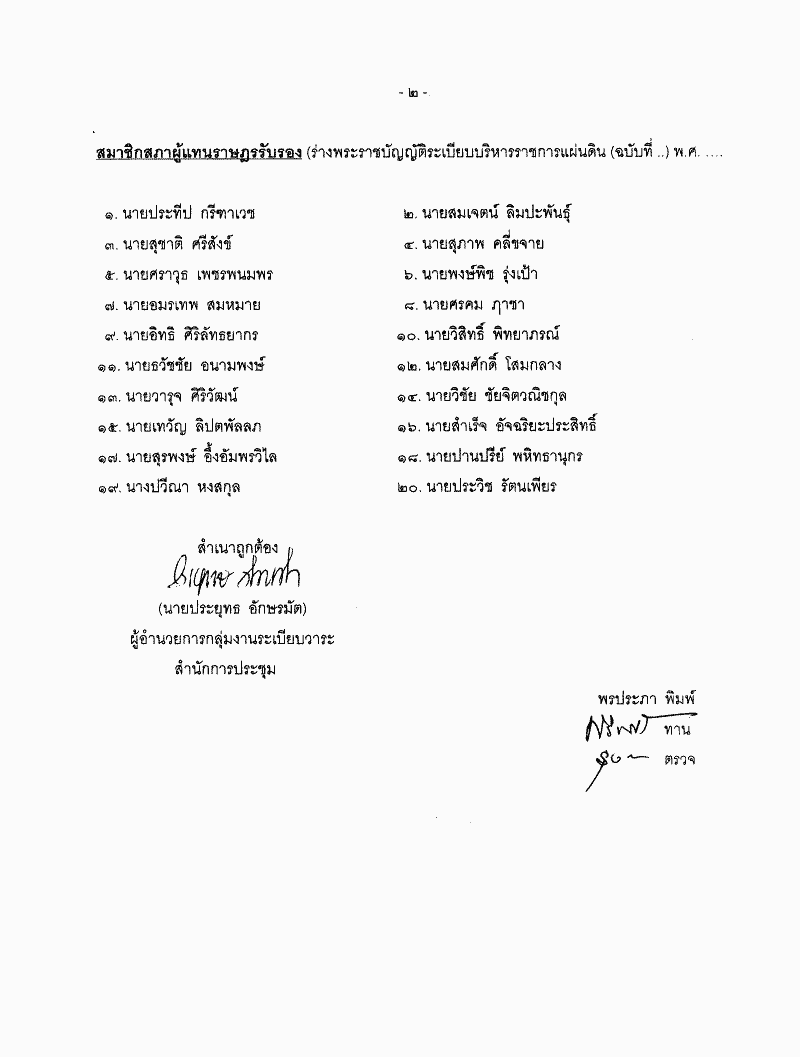 ร่างพระราชบัญญัติระเบียบบริหารราชการแผ่นดิน (ฉบับที่..) พ.ศ..... (นายประชาธิปไตย คำสิงห์นอก และนายสมชัย ฉัตรพัฒนศิริ เป็นผู้เสนอ) |