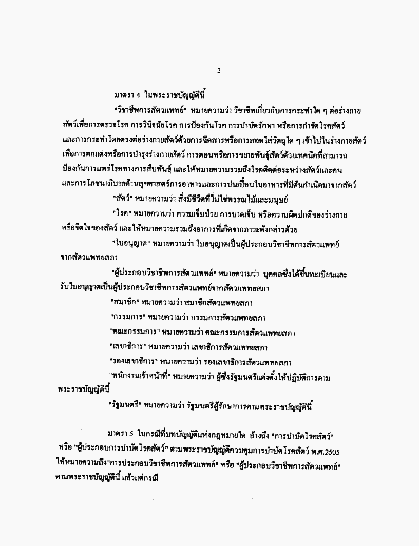 ชื่อเอกสาร :   ร่างพระราชบัญญัติวิชาชีพการสัตว์แพทย์ พ.ศ. .... (คณะรัฐมนตรี เป็นผู้เสนอ)