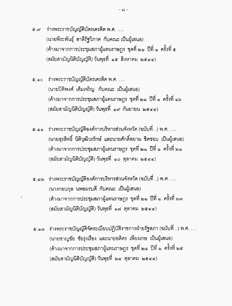 ชื่อเอกสาร : ระเบียบวาระการประชุมสภาผู้แทนราษฎร ชุดที่ 21 ปีที่ 2 ครั้งที่ 14 (สมัยสามัญนิติบัญญัติ) วันจันทร์ที่ 23 กันยายน 2545