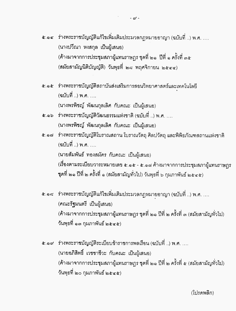 ชื่อเอกสาร :   ระเบียบวาระการประชุมสภาผู้แทนราษฎร ชุดที่ 21 ปีที่ 2 ครั้งที่ 14 (สมัยสามัญนิติบัญญัติ) วันจันทร์ที่ 23 กันยายน 2545