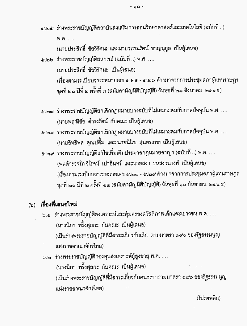 • ระเบียบวาระการประชุมเพิ่มเติม