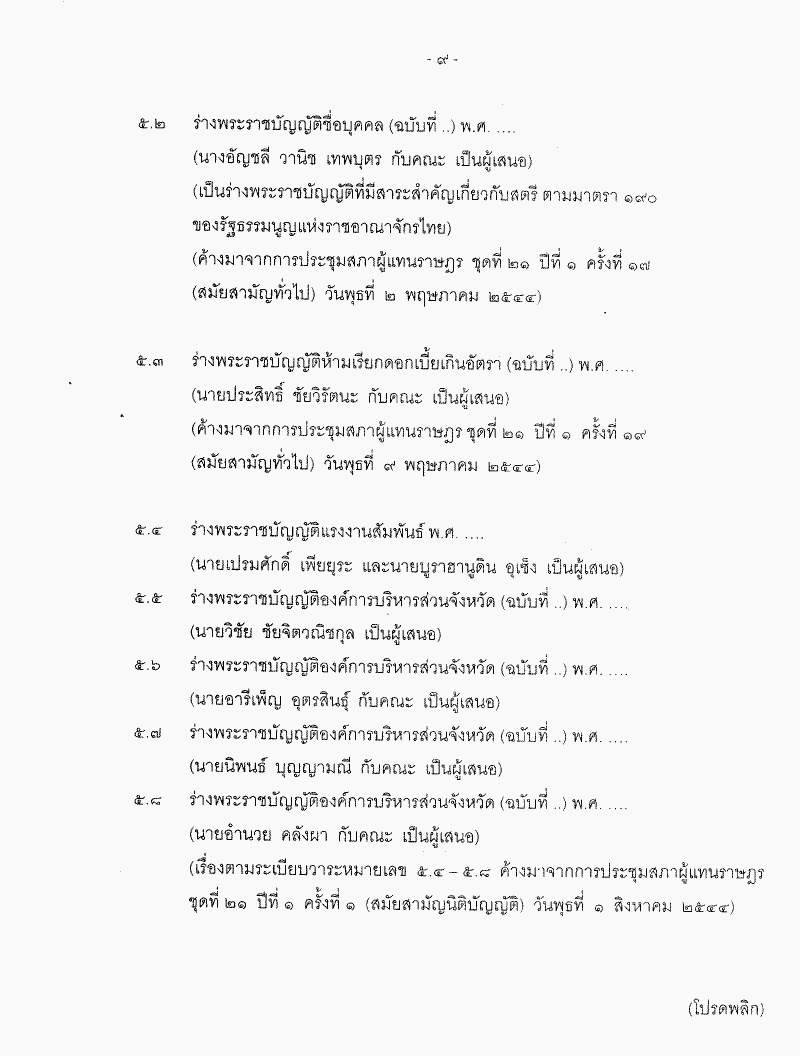 ชื่อเอกสาร :   ระเบียบวาระการประชุมสภาผู้แทนราษฎร ชุดที่ ๒๑ ปีที่ ๒ ครั้งที่ ๑ (สมัยสามัญนิติบัญญัติ) วันพุธที่ ๗ สิงหาคม ๒๕๔๕