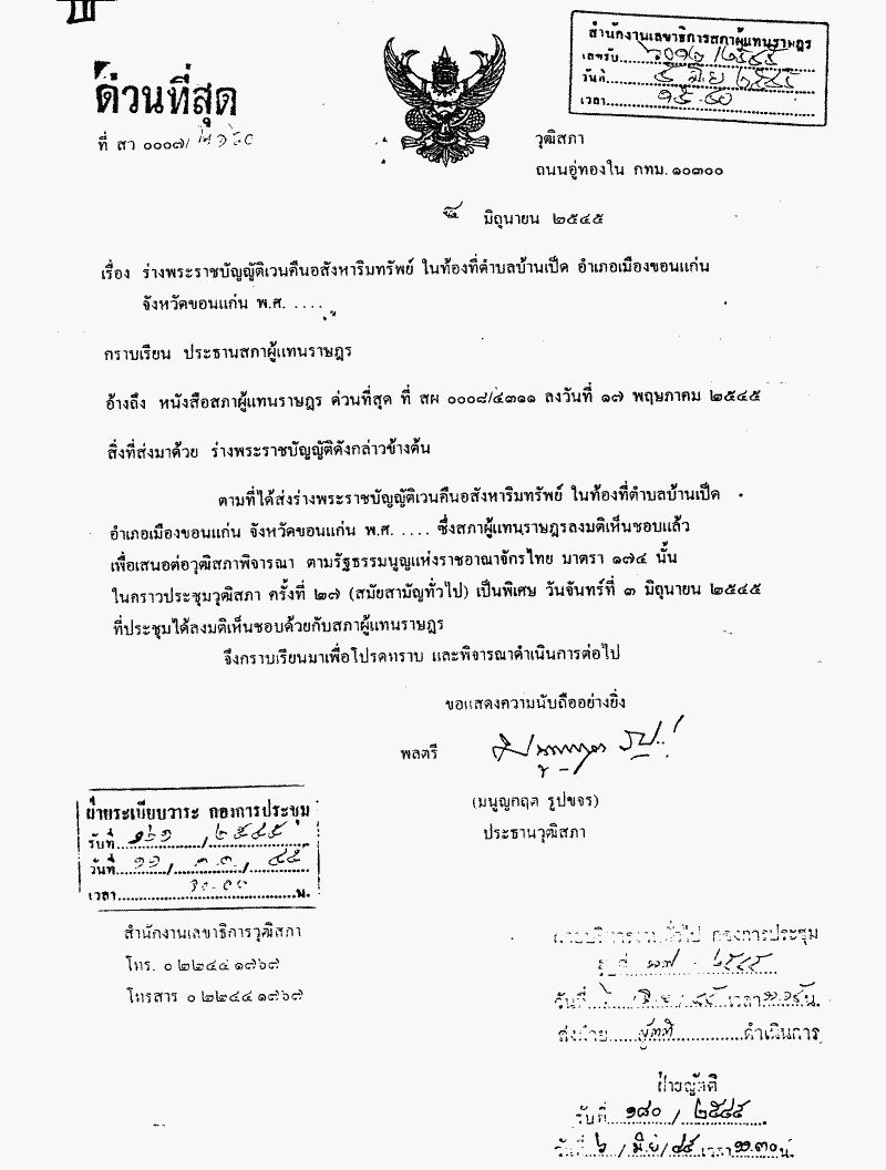 ร่างพระราชบัญญัติเวนคืนอสังหาริมทรัพย์ ในท้องที่ตำบลบ้านเป็ด อำเภอเมืองขอนแก่นจังหวัดขอนแก่น พ.ศ. .... |