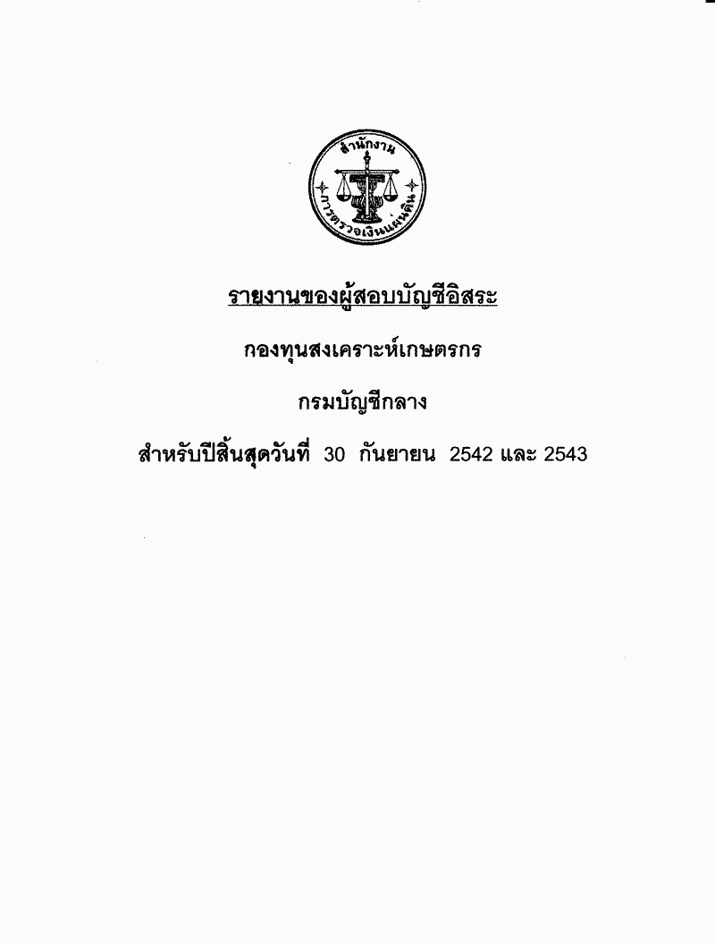 • รายงานผลการตรวจสอบรายงานการรับ-จ่ายเงินของกองทุนสงเคราะห์เกษตรกรและเงินกองทุนหมุนเวียนสำหรับอุดหนุนเกษตรกรในการหาปัจจัยการผลิตตามโครงการความช่วยเหลือเพื่อเพิ่มผลผลิตทางอาหารจากรัฐบาลญี่ปุ่น ประจำปีงบประมาณ พ.ศ. 2542 และ 2543