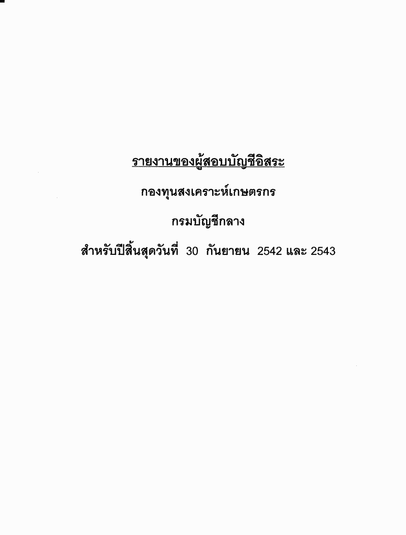 • รายงานผลการตรวจสอบรายงานการรับ-จ่ายเงินของกองทุนสงเคราะห์เกษตรกรและเงินกองทุนหมุนเวียนสำหรับอุดหนุนเกษตรกรในการหาปัจจัยการผลิตตามโครงการความช่วยเหลือเพื่อเพิ่มผลผลิตทางอาหารจากรัฐบาลญี่ปุ่น ประจำปีงบประมาณ พ.ศ. 2542 และ 2543