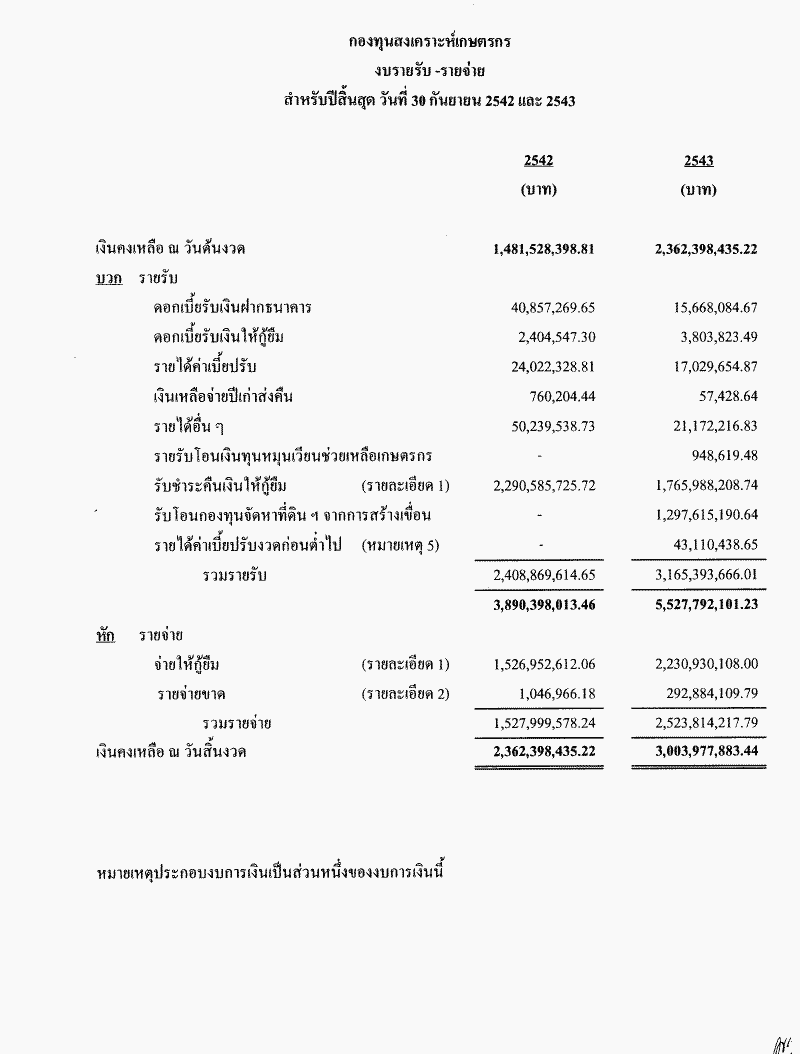• รายงานผลการตรวจสอบรายงานการรับ-จ่ายเงินของกองทุนสงเคราะห์เกษตรกรและเงินกองทุนหมุนเวียนสำหรับอุดหนุนเกษตรกรในการหาปัจจัยการผลิตตามโครงการความช่วยเหลือเพื่อเพิ่มผลผลิตทางอาหารจากรัฐบาลญี่ปุ่น ประจำปีงบประมาณ พ.ศ. 2542 และ 2543