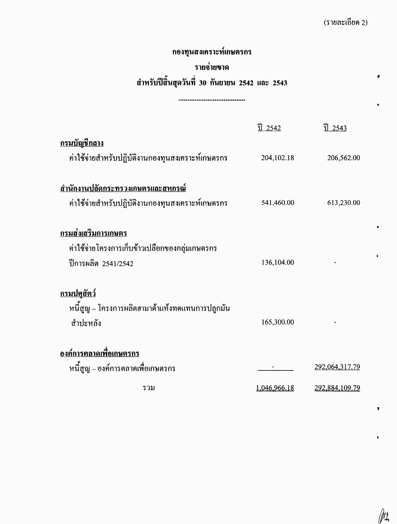 • รายงานผลการตรวจสอบรายงานการรับ-จ่ายเงินของกองทุนสงเคราะห์เกษตรกรและเงินกองทุนหมุนเวียนสำหรับอุดหนุนเกษตรกรในการหาปัจจัยการผลิตตามโครงการความช่วยเหลือเพื่อเพิ่มผลผลิตทางอาหารจากรัฐบาลญี่ปุ่น ประจำปีงบประมาณ พ.ศ. 2542 และ 2543