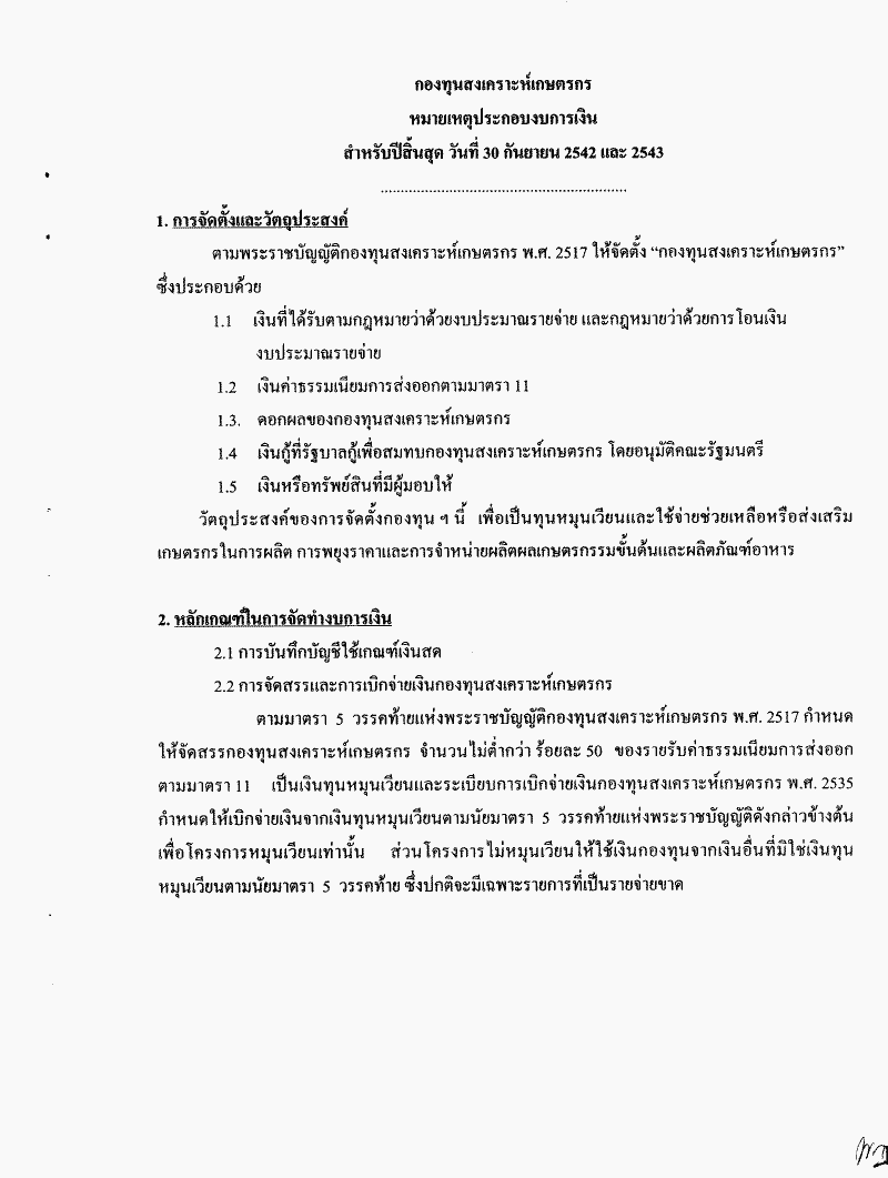 • รายงานผลการตรวจสอบรายงานการรับ-จ่ายเงินของกองทุนสงเคราะห์เกษตรกรและเงินกองทุนหมุนเวียนสำหรับอุดหนุนเกษตรกรในการหาปัจจัยการผลิตตามโครงการความช่วยเหลือเพื่อเพิ่มผลผลิตทางอาหารจากรัฐบาลญี่ปุ่น ประจำปีงบประมาณ พ.ศ. 2542 และ 2543