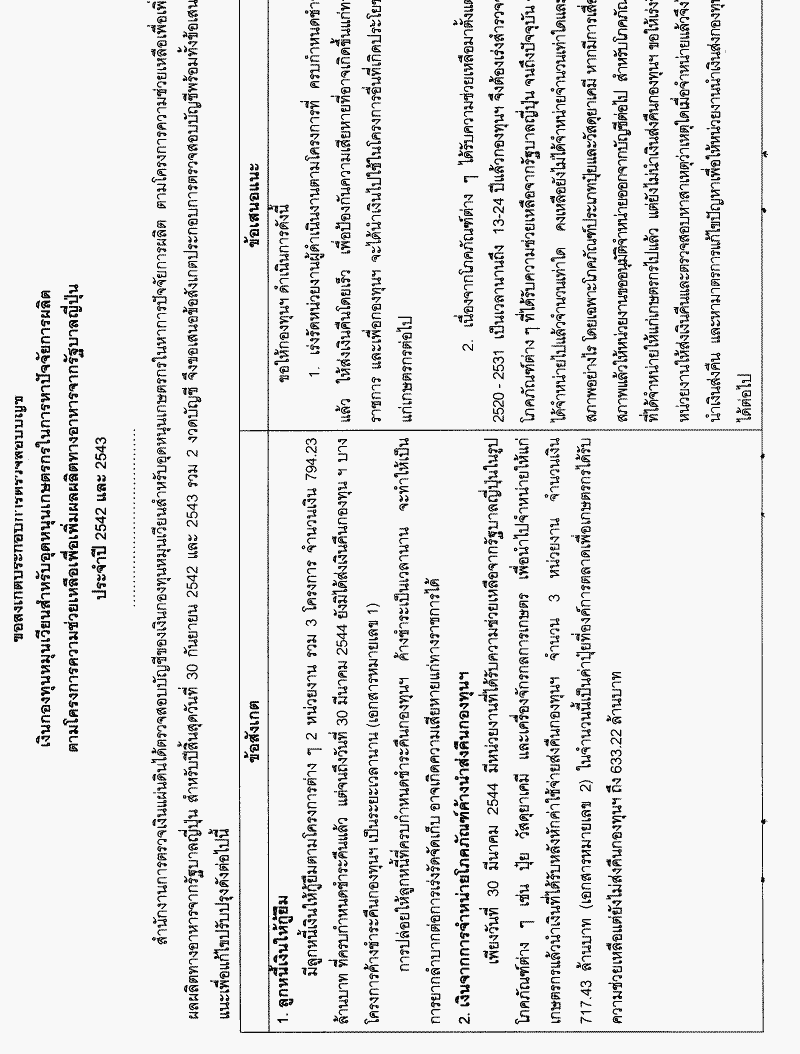 • รับทราบรายงานผลการตรวจสอบรายงานการรับ-จ่ายเงินของกองทุนสงเคราะห์เกษตรกรและเงินกองทุนหมุนเวียนสำหรับอุดหนุนเกษตรกรในการหาปัจจัยการผลิตตามโครงการความช่วยเหลือเพื่อเพิ่มผลผลิตทางอาหารจากรัฐบาลญี่ปุ่น ประจำปีงบประมาณ พ.ศ. 2542 และ 2543