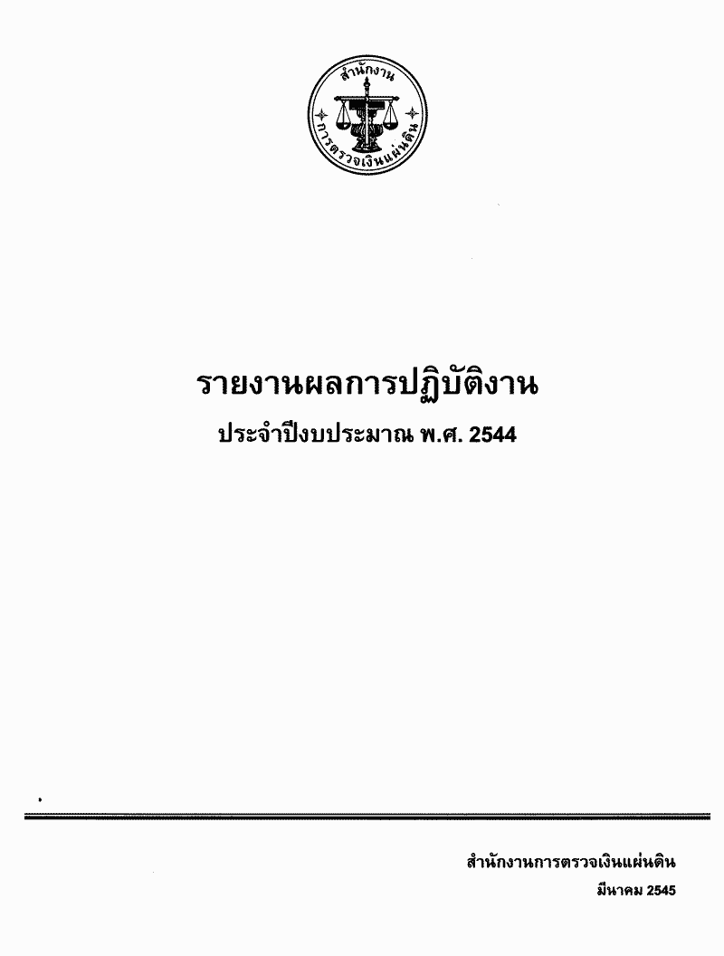 รายงานผลการปฏิบัติงานประจำปีงบประมาณ พ.ศ. 2544 ของสำนักงานการตรวจเงินแผ่นดิน