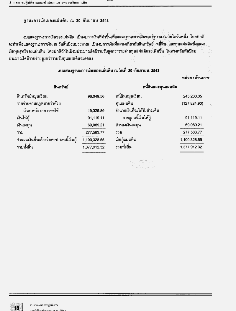 รายงานผลการปฏิบัติงานประจำปีงบประมาณ พ.ศ. 2544 ของสำนักงานการตรวจเงินแผ่นดิน