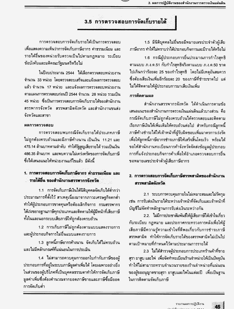 รายงานผลการปฏิบัติงานประจำปีงบประมาณ พ.ศ. 2544 ของสำนักงานการตรวจเงินแผ่นดิน